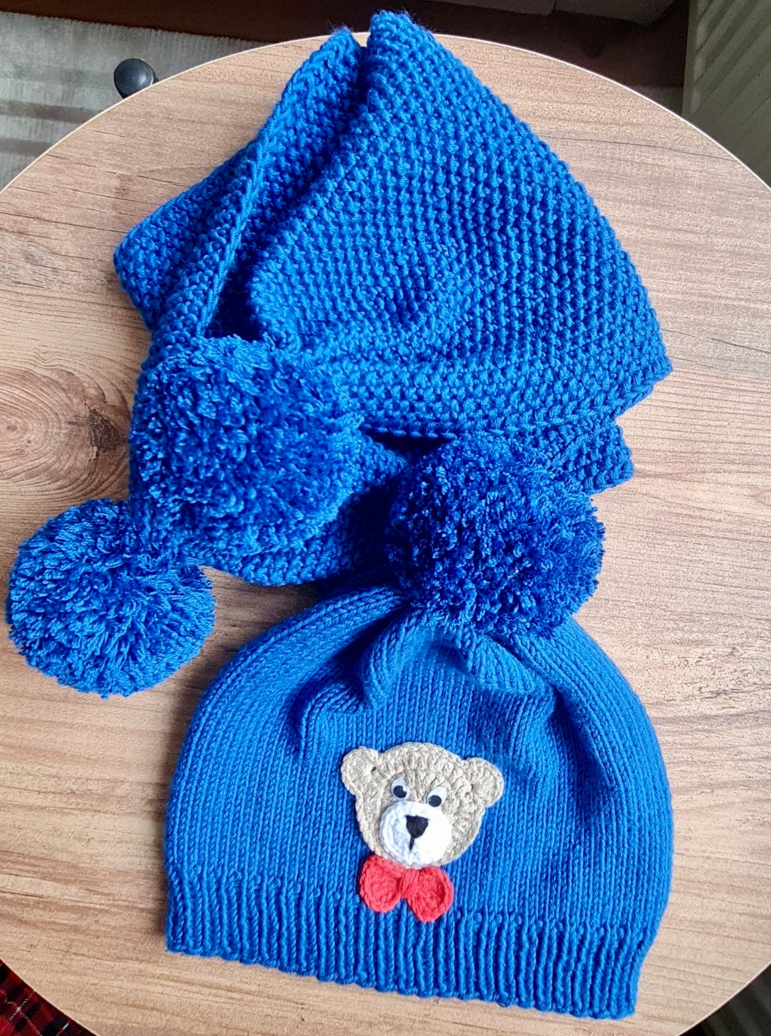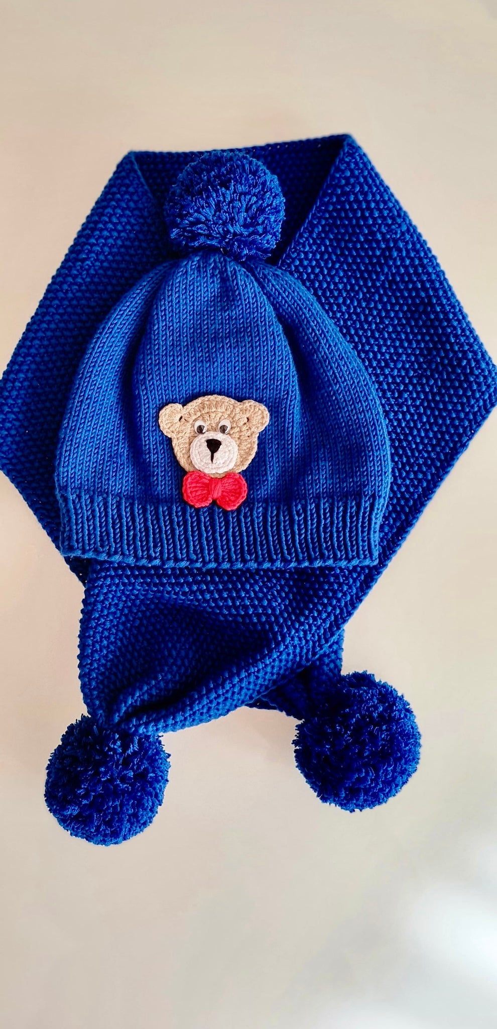 El örgüsü bebek bere atkı takım, 100% el emeğidir.