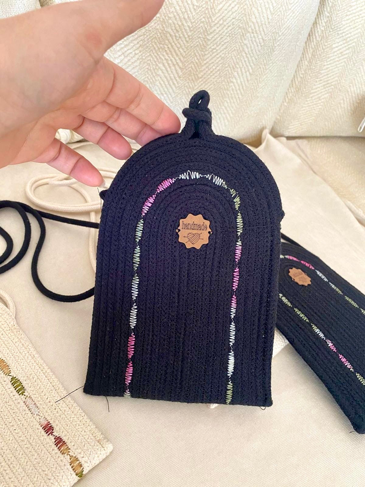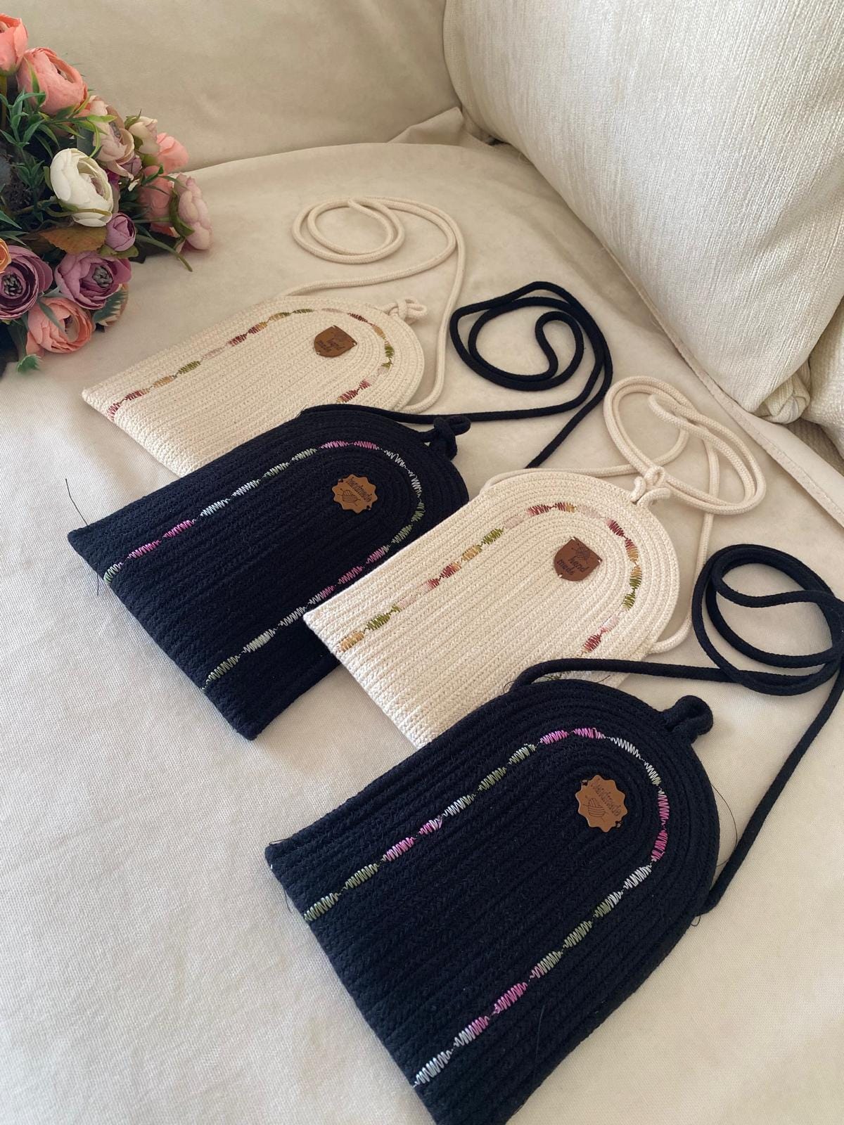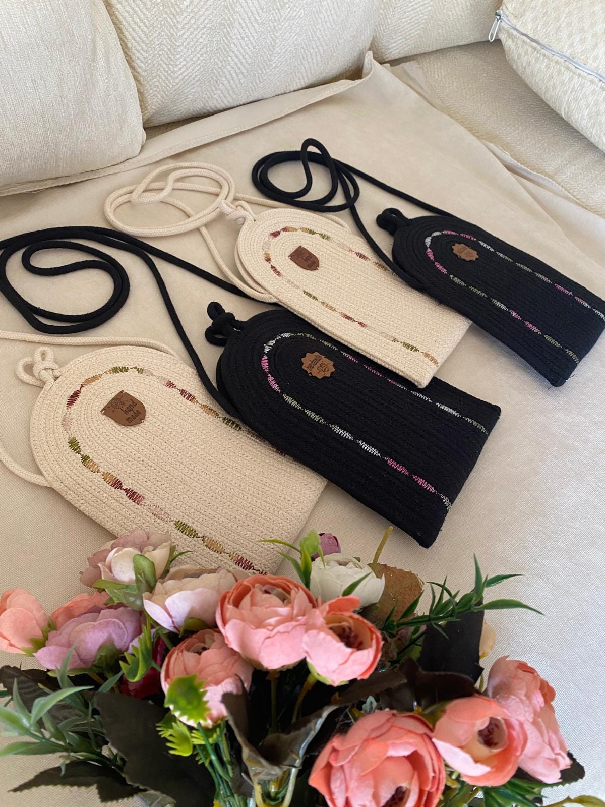 El örgüsü makrome telefon çantaları, 100% el emeğidir.