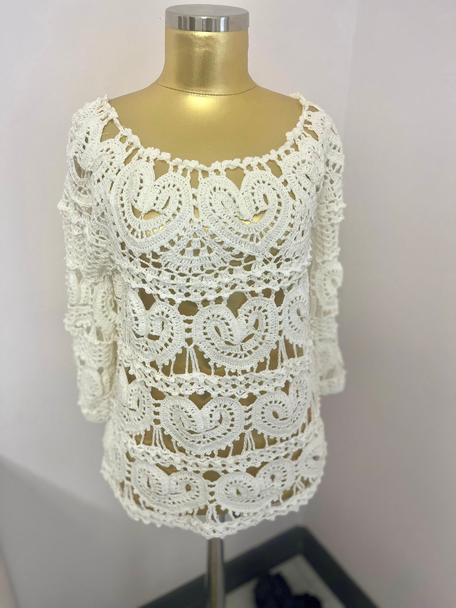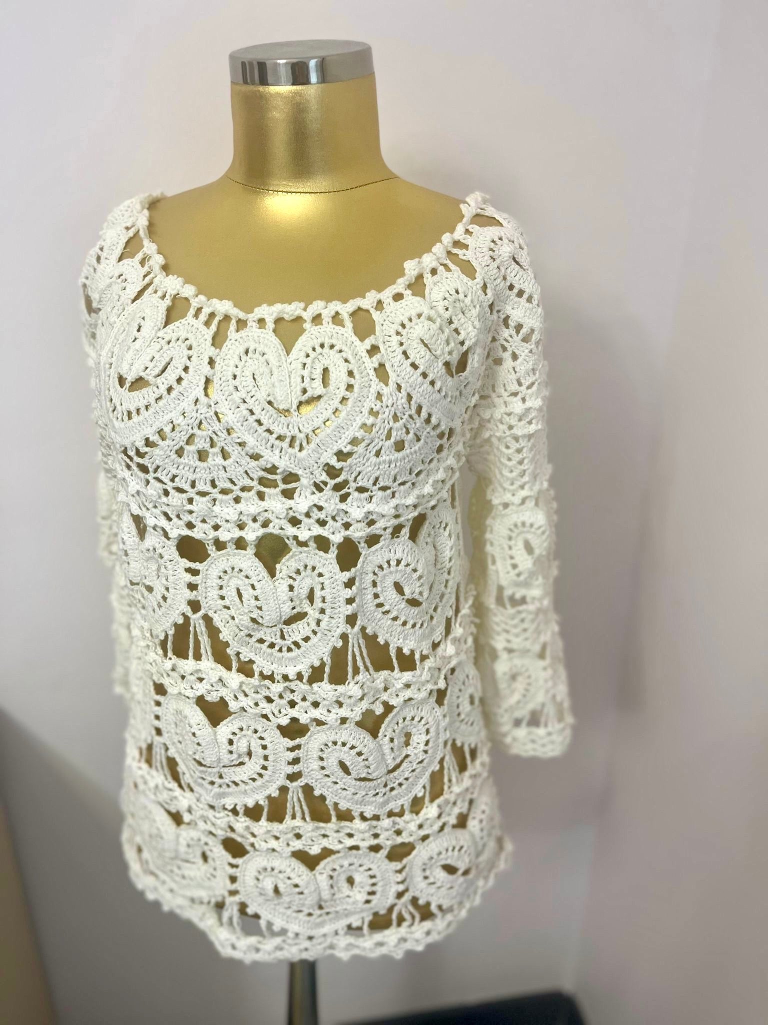 El örgüsü kalp motifli bluz, 100% el emeğidir.