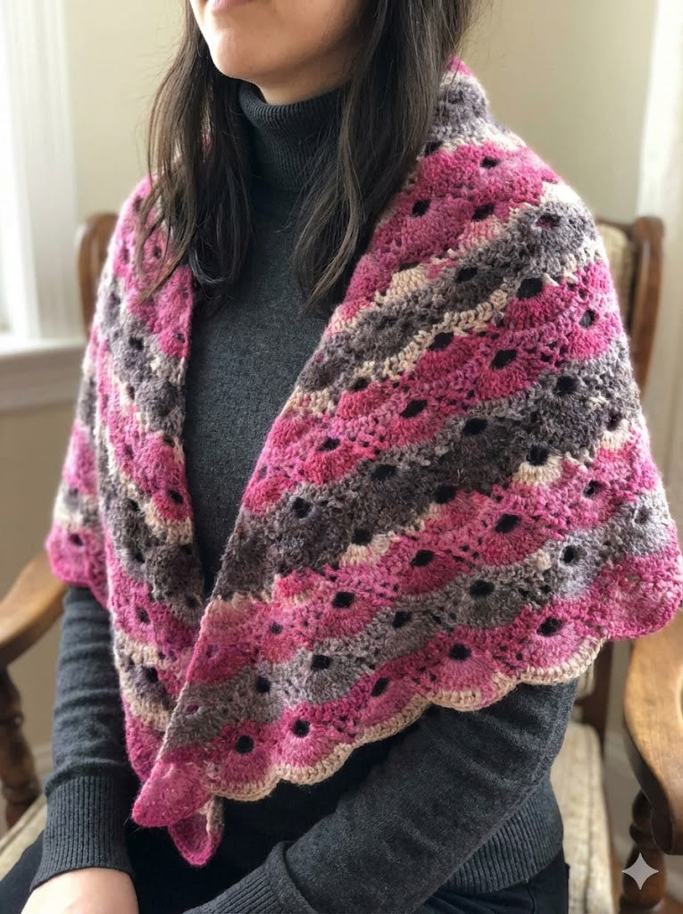 Hand Knitted Pink Wool Shawl